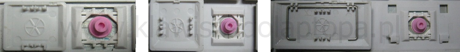 - Om het juiste model te kiezen, vergelijk de lege plek op jouw toetsenbord met de onderstaande foto’s, of verwijder de toets “A” – daaronder zit altijd een middelgrote clip.