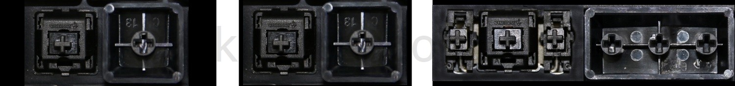 - Bij de meeste toetsenborden die er van buiten identiek uitzien, werden verschillende soorten clips onder de toetsen gebruikt.