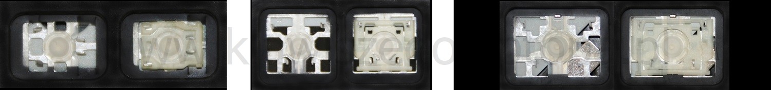 - Bij de meeste toetsenborden die er van buiten identiek uitzien, werden verschillende soorten clips onder de toetsen gebruikt.