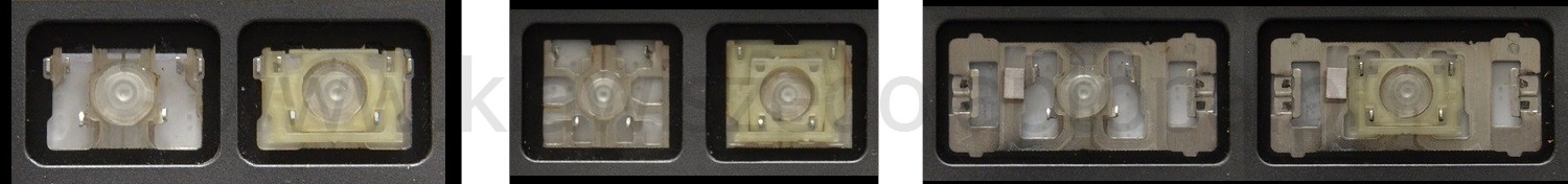 - Bij de meeste toetsenborden die er van buiten identiek uitzien, werden verschillende soorten clips onder de toetsen gebruikt.