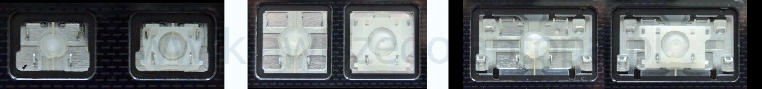 - Bij de meeste toetsenborden die er van buiten identiek uitzien, werden verschillende soorten clips onder de toetsen gebruikt.