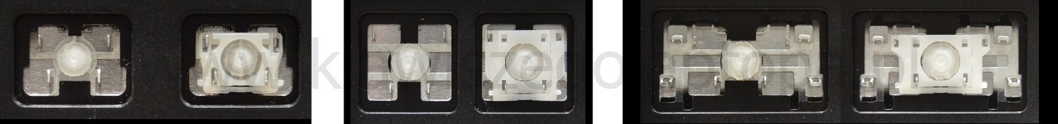 - Bij de meeste toetsenborden die er van buiten identiek uitzien, werden verschillende soorten clips onder de toetsen gebruikt.