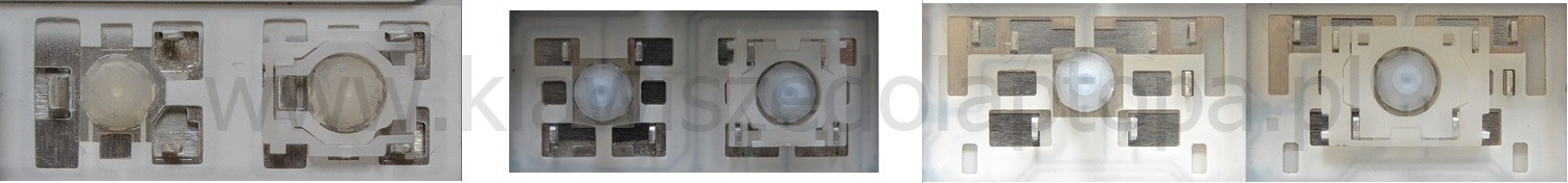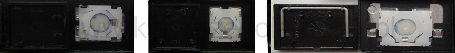 - Om het juiste model te kiezen, vergelijk de lege plek op jouw toetsenbord met de onderstaande foto’s, of verwijder de toets “A” – daaronder zit altijd een middelgrote clip.