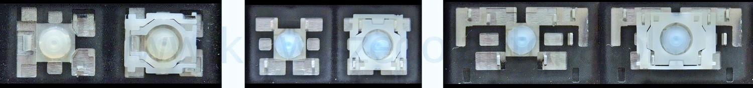 - Bij de meeste toetsenborden die er van buiten identiek uitzien, werden verschillende soorten clips onder de toetsen gebruikt.