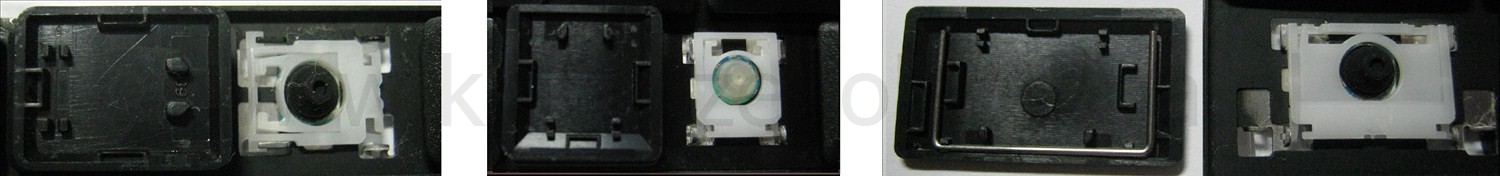 - Bij de meeste toetsenborden die er van buiten identiek uitzien, werden verschillende soorten clips onder de toetsen gebruikt.