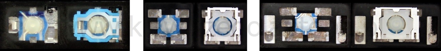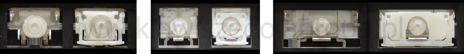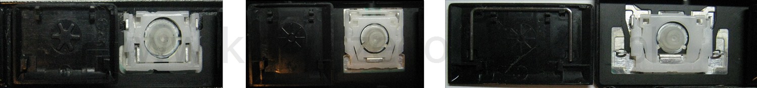 - Bij de meeste toetsenborden die er van buiten identiek uitzien, werden verschillende soorten clips onder de toetsen gebruikt.