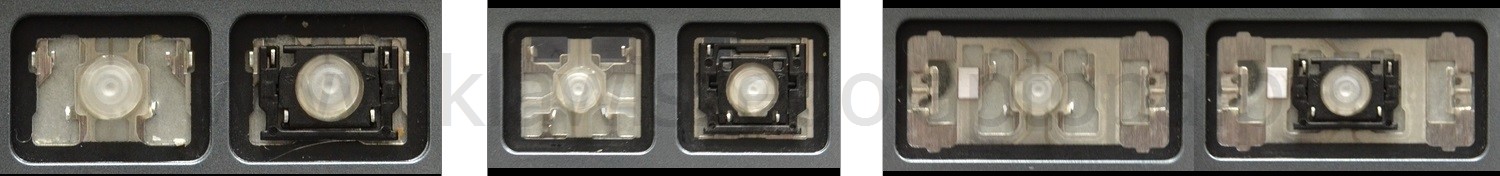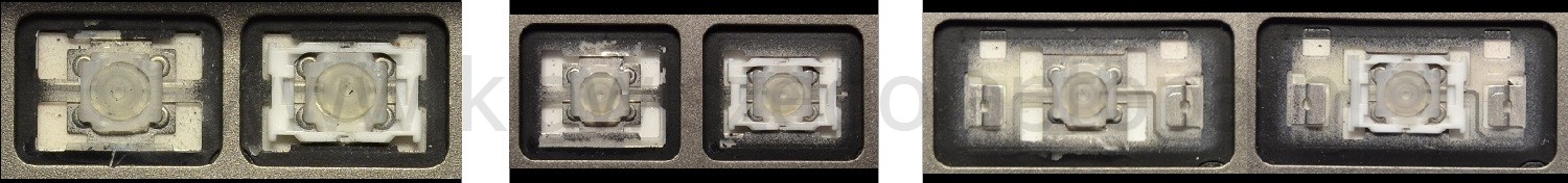 - Bij de meeste toetsenborden die er van buiten identiek uitzien, werden verschillende soorten clips onder de toetsen gebruikt.