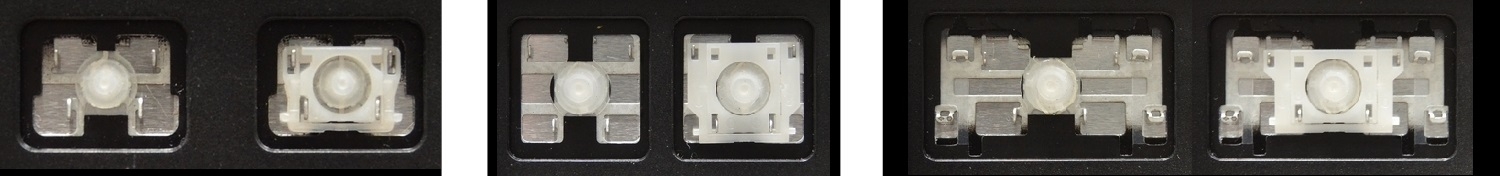 - Bij de meeste toetsenborden die er van buiten identiek uitzien, werden verschillende soorten clips onder de toetsen gebruikt.
