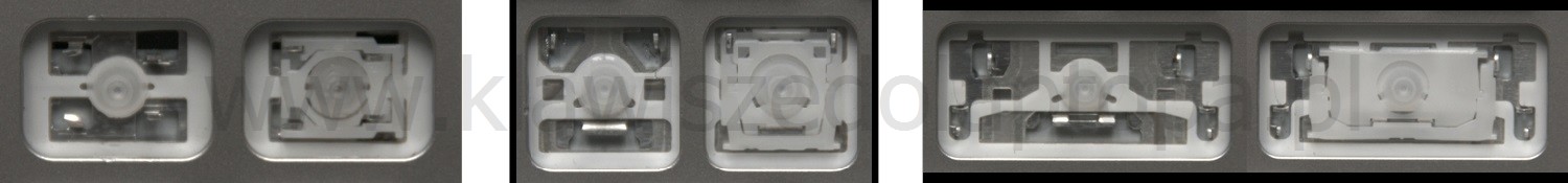 - Om het juiste model te kiezen, vergelijk de lege plek op jouw toetsenbord met de onderstaande foto’s, of verwijder de toets “A” – daaronder zit altijd een middelgrote clip.