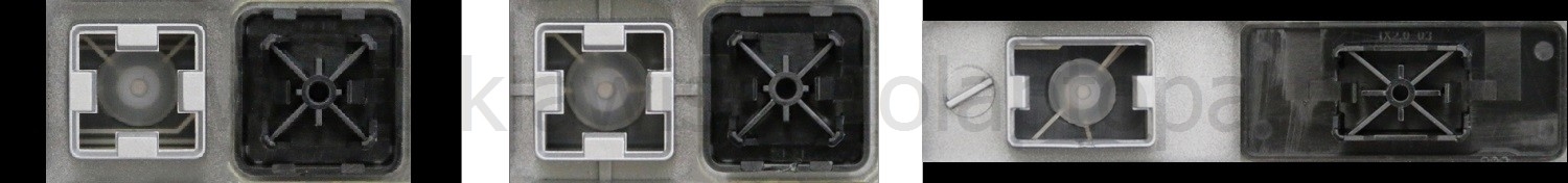 - Om het juiste model te kiezen, vergelijk de lege plek op jouw toetsenbord met de onderstaande foto’s, of verwijder de toets “A” – daaronder zit altijd een middelgrote clip.